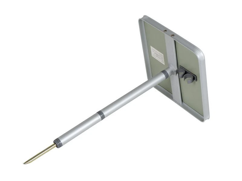 Een zeer praktische priktafel. Deze tafel is eenvoudig in de grond te steken en hierdoor ideaal voor gebruik op ongelijke ondergronden. De tafel is eenvoudig en compact op te bergen door de afneembare poot. Deze kan onder het tafelblad worden bevestigd. Ingeklapt (lxbxh): 26x26x4,5 centimeter.