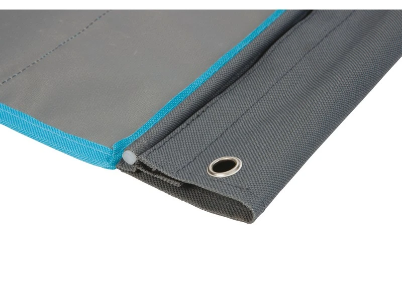 Een multifunctionele 14-vaks organizer met spiegel. Gemaakt van een hoge kwaliteit Two-Tone 600D Oxford Polyester. Beschikt over 2 ruime vakken, 6 medium vakken, 6 kleine vakken en een spiegel. Eenvoudig en op diverse manieren te bevestigen. Zo kan dit tentschort met de pees worden opgehangen aan een caravanrails, met het klittenband aan een tentstok of met de zeilogen aan haken. De lussen onderaan zorgen voor extra fixatie.