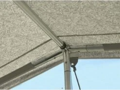 De Atrium 300 heeft een voortentdiepte (grondmaat) van 300 cm. De zijwanden zijn uitgevoerd met in totaal 4 elementen. 2 raamelementen en 2 ventilatie-elementen Deze 4 elementen kunnen geheel naar wens worden geplaatst. Tegen meerprijs is zowel voor de voorwand als voor de zijwand een ronde deur leverbaar. Afgedekte ritsen in de voor – en zijwanden.