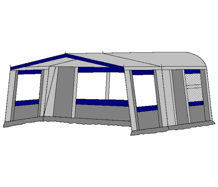- Luifel is in zijn geheel aanritsbaar gemaakt aan de voortent. Dus niet alleen het dak is aanritsbaar, maar ook de zijwanden zijn aangeritst aan de voortent.