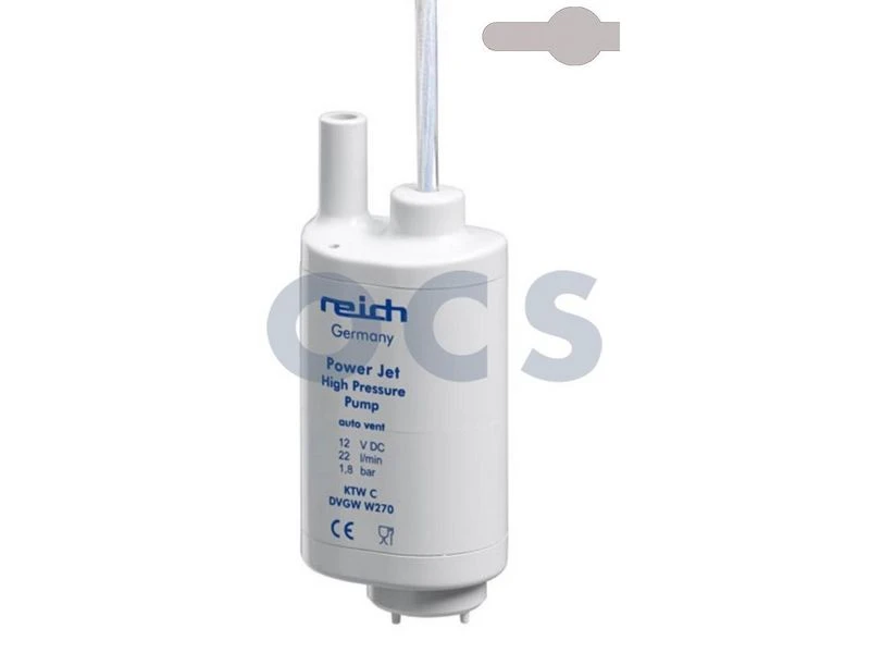 Reich PowerJet dompelpomp heeft een hoge opbrengst. Met deze wateropbrengst is douchen geen probleem en heeft men een krachtige straal indien nodig. Het materiaal is vuilafstotend, eenvoudig te reinigen en hygiënisch. Zonder terugslagventiel, met automatische ontluchting. Druk 2,1 bar, Diameter 55mm, Stroomverbruik 75 Watt