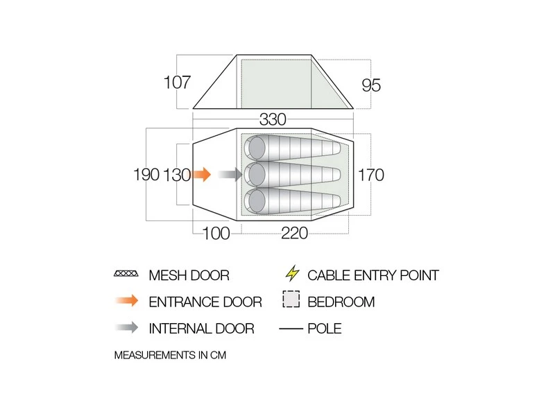 Gepatenteerd Vango TBS® – Tension Band systeem zorgt dat de tent blijft staan bij harde wind. De banden ondersteunen de stokken op 3 plaatsen en voorkomen zijwaartse beweging. Span niet strakker af dan nodig, omdat de stokken anders kromtrekken. Kan bij rustig weer worden opgeborgen.